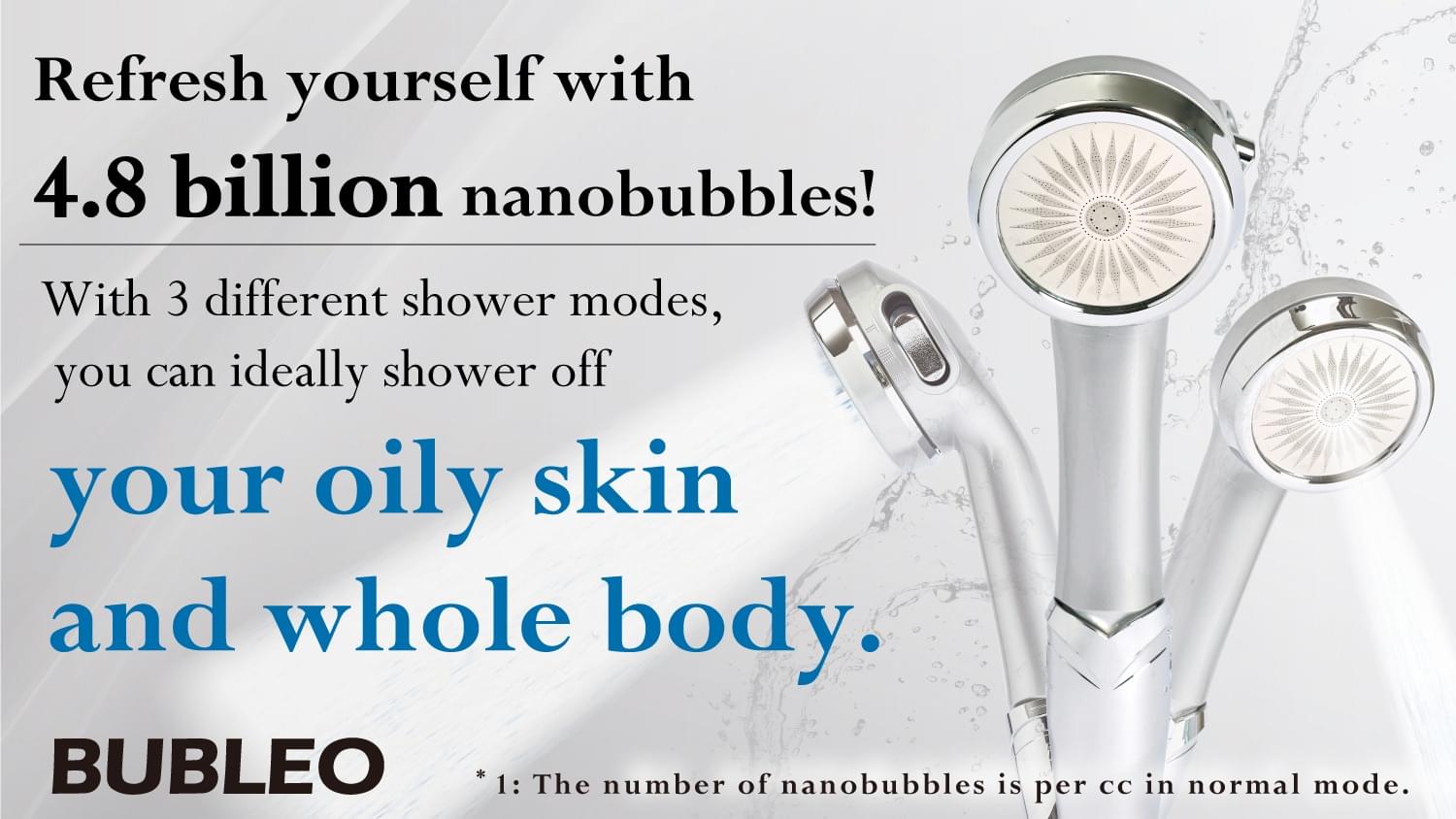 Refresh yourself with 4.8 billion nanobubbles! You can ideally shower off your oily skin and whole body with three different shower modes.