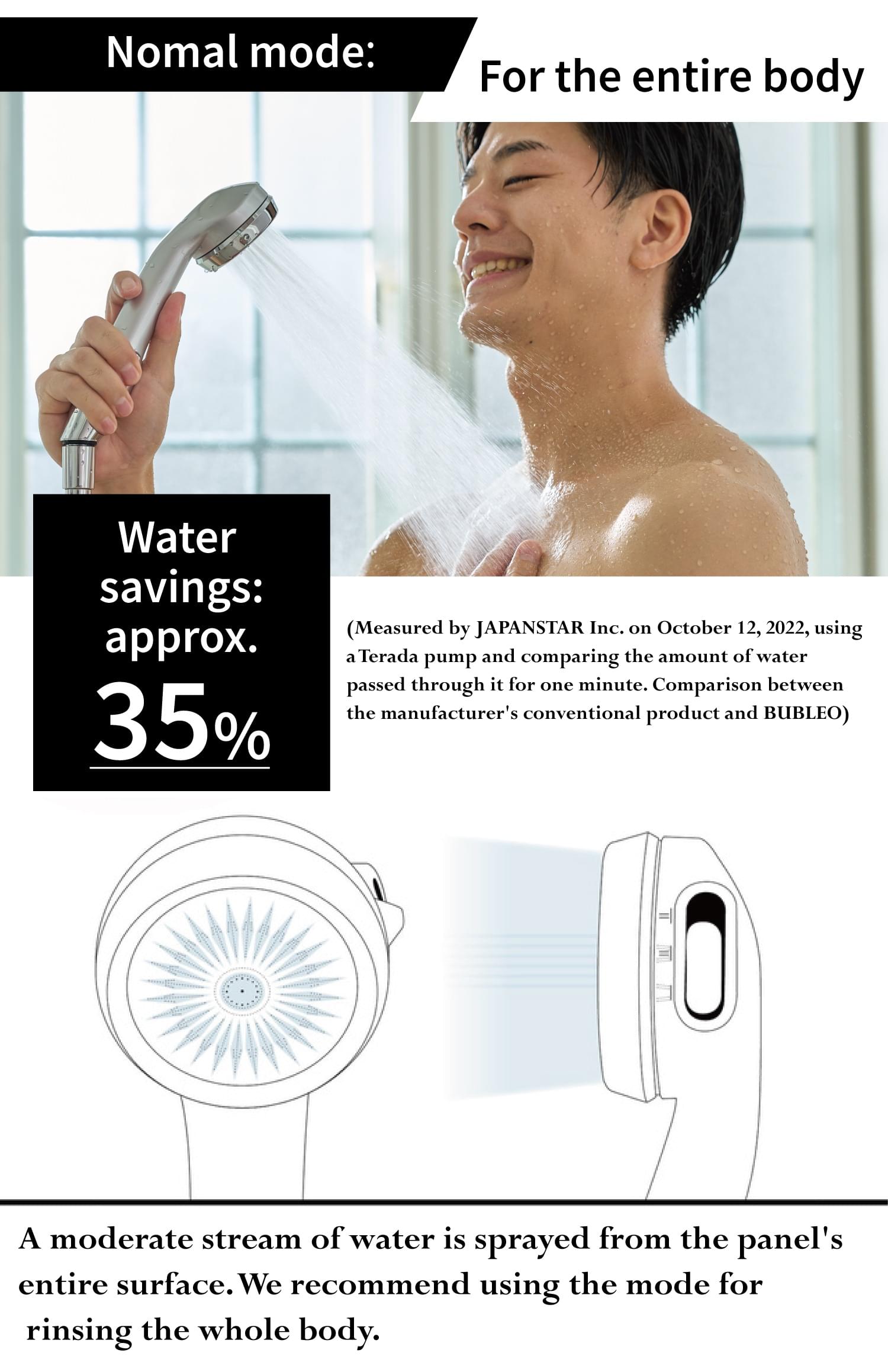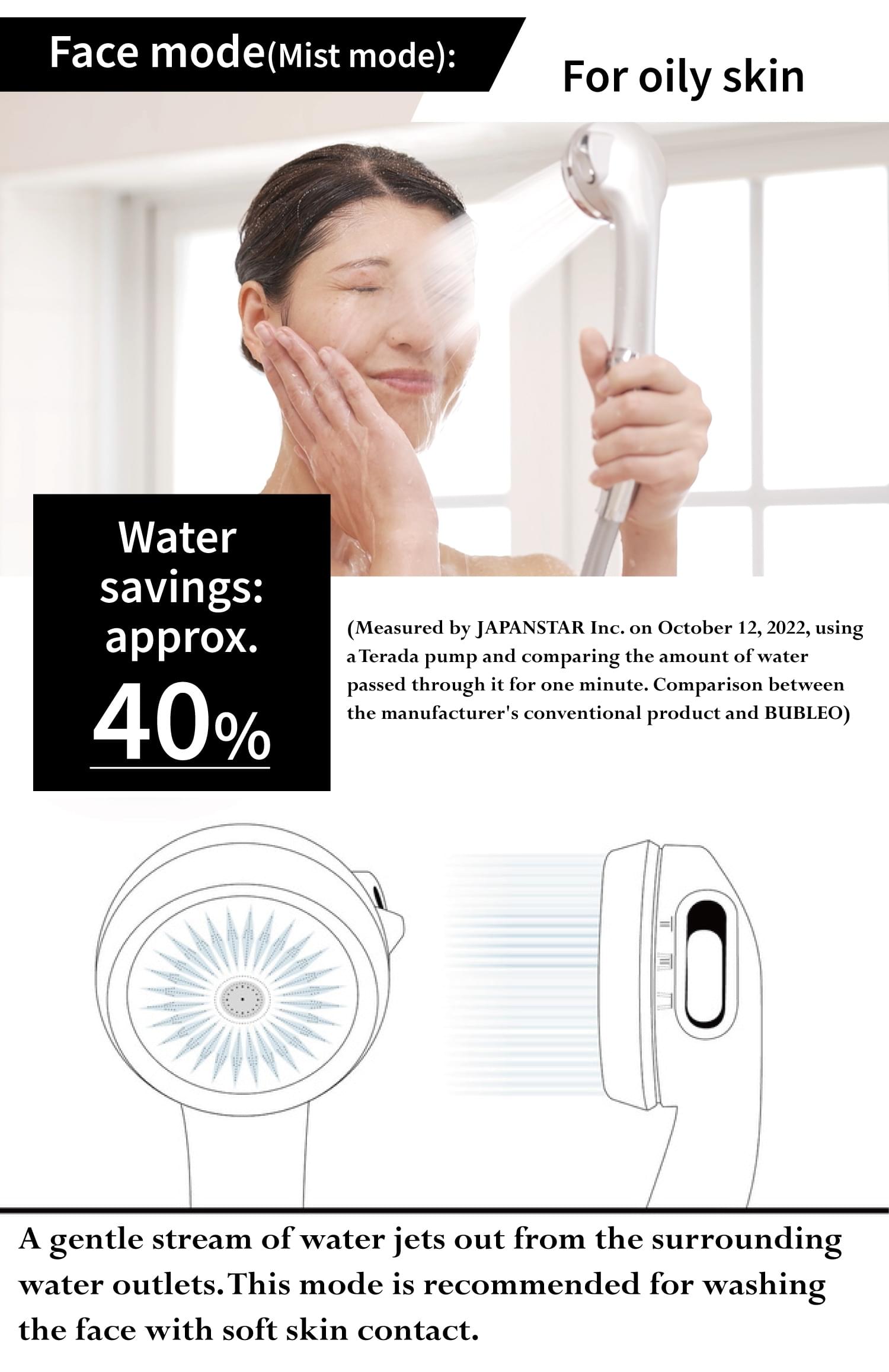 BUBLEO's nanobubbles can wash away make-up foundations. Very versatile for daily skincare and shampooing children and pets. This showerhead is also good for the environment, saving up to 72% of your water consumption.